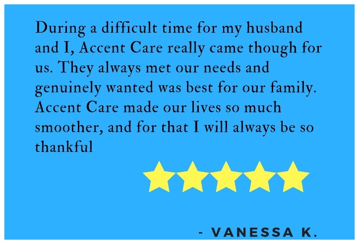 Accent Care was founded on the principle of helping others, and that is why we offer customizable, flexible home care to meet all needs. We pride ourselves on building strong and lasting relationships with our clients, because caring for a loved one can be difficult, and we are here to help.